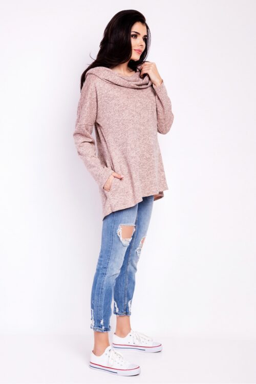 Extremely original and fashionable oversize sweatshirt. Very comfortable and convenient. Made of high quality cotton. Sweatshirt has a hood, which can be turned up collar. Ideal as a complement to styling on cooler spring and summer days.