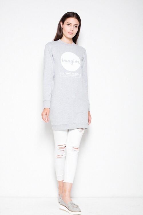 Ladies’ sweatshirt with a loose fit in grey with long sleeves. Pockets in the side seams. The back is slightly extended. The sweatshirt has a hood. Ideal for everyday and not only. Spandex 2 % Polyester 65 % Viscose 33…