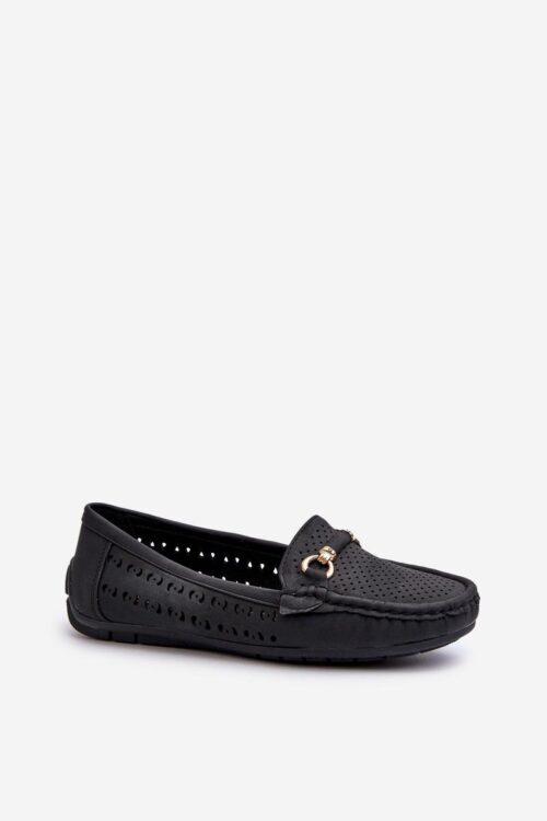 Women’s openwork moccasins made of eco leather. Gold decoration on the front gives them a unique character. The soft insole will ensure comfort during use. Perfect for many different occasions, these moccasins will make your styling unique and stylish. fabric…