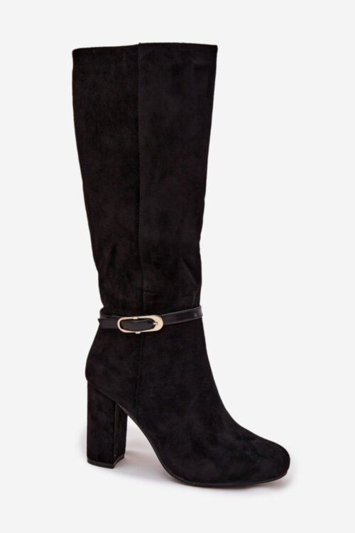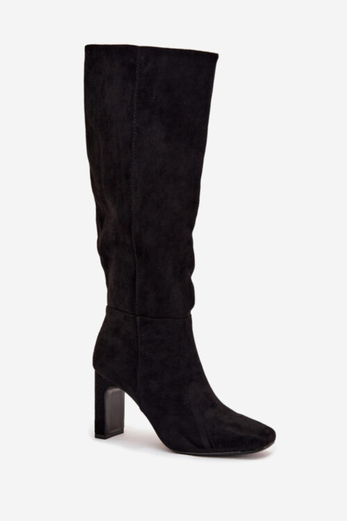 Women’s boots made of eco suede, set on a column-shaped heel, are an elegant proposal for winter days. Square-shaped toes add a modern character to them, and the lining with shoe insulation ensures warmth. Fastened with a zipper, the knee-high…