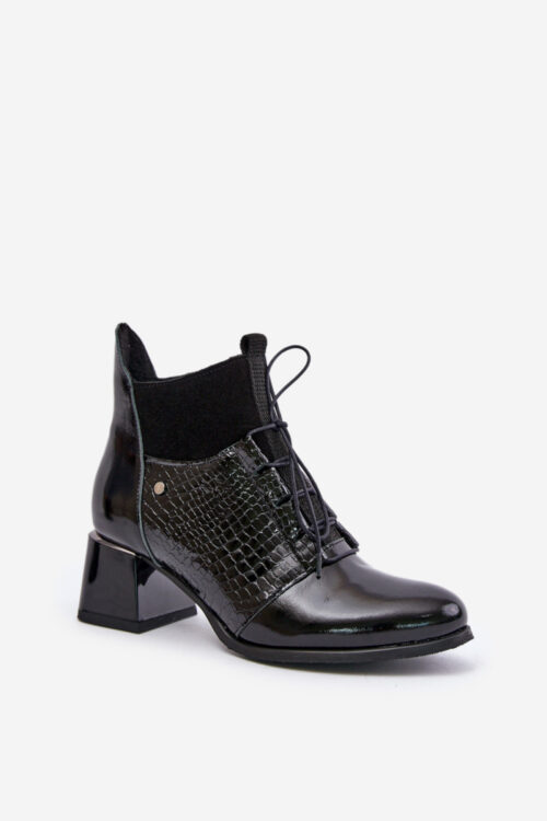 Booties from Jezzi brand, made of eco leather. Set on a stable heel in the form of a post. The model is zippered and additionally laced, which guarantees a perfect fit. The insulated interior provides comfort on colder days. On…