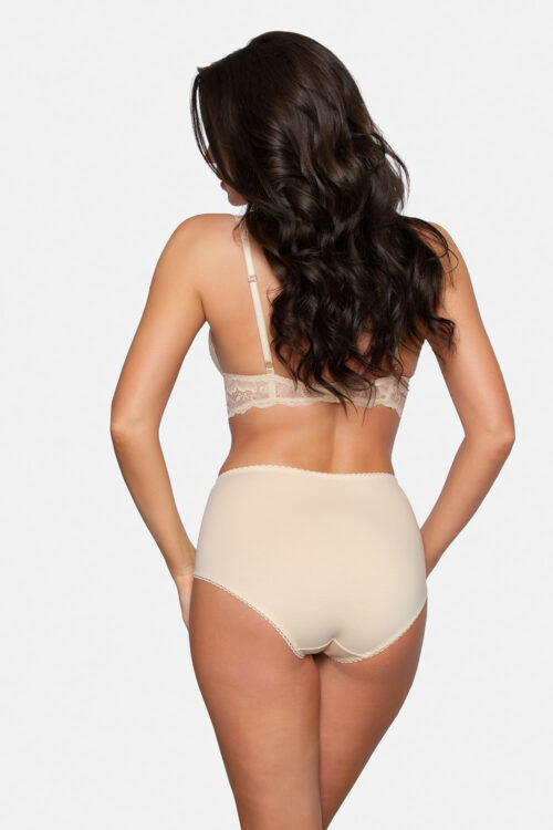 High-rise women’s panties built up on the hips. Made of smooth microfiber and delicate lace. Spandex 5 % Polyester 95 % Size Hips width L 105-110 cm M 96-104 cm S 88-95 cm XL 111-118 cm
