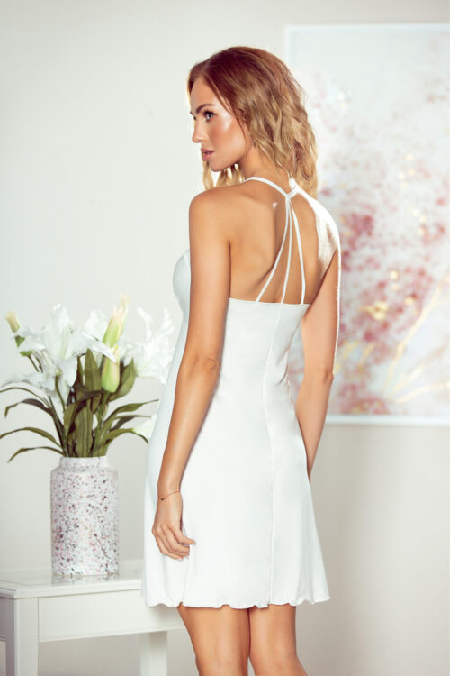 Nightgown in the cut of a neat summer dress. Model on wider straps, with V neckline finished with lace trim. The cut is slightly fitted, emphasizes body features and at the same time allows for full comfort. Soft and flexible…