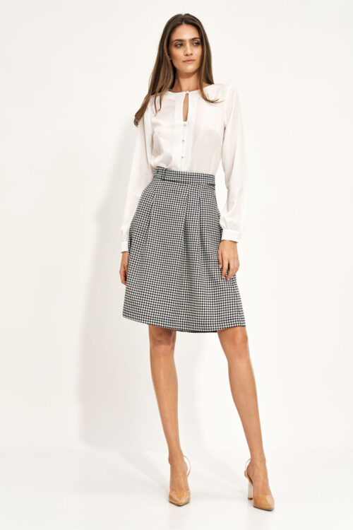 A maxi skirt made of soft and pleasant knit fabric. Crease from the waist down finished with a slit on the leg in the form of a strut. The cut of the skirt beautifully emphasizes the figure. Designed and sewn in Poland.